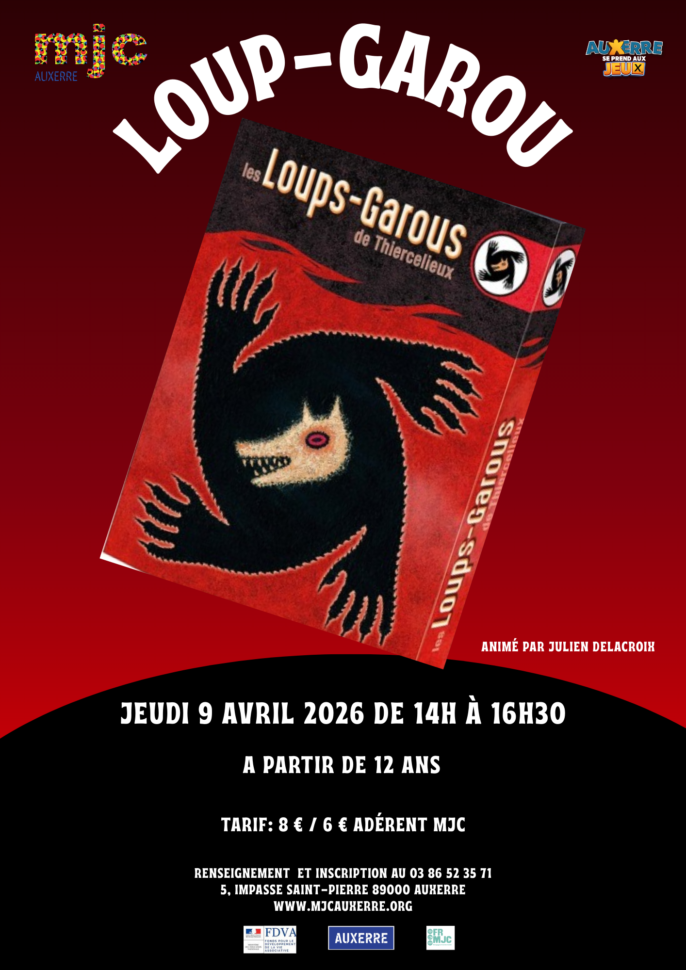 | Vous êtes adapté du jeu « Loup-Garou » ou vous en avez beaucoup entendu parler et souhaitez découvrir ? Alors n’hésitez pas à venir à la MJC découvrir ou redécouvrir ce jeu emblématique mêlant stratégie, bluff et esprit collectif. Les places étant limitées, l’inscription est indispensable. |
