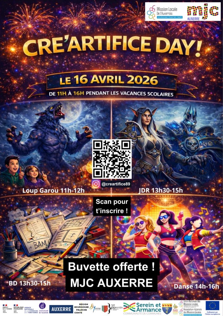 Une super journée en perspective à la MJC organisée par un groupe de jeunes de la Mission locale super sympas et motivés ! Au programme de la danse, des jeux, du dessin BD… Entièrement gratuit !